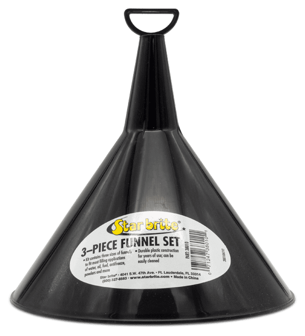 This Star Brite 3-piece funnel set fits most filling applications of water, oil, fuel, antifreeze, powders and more.