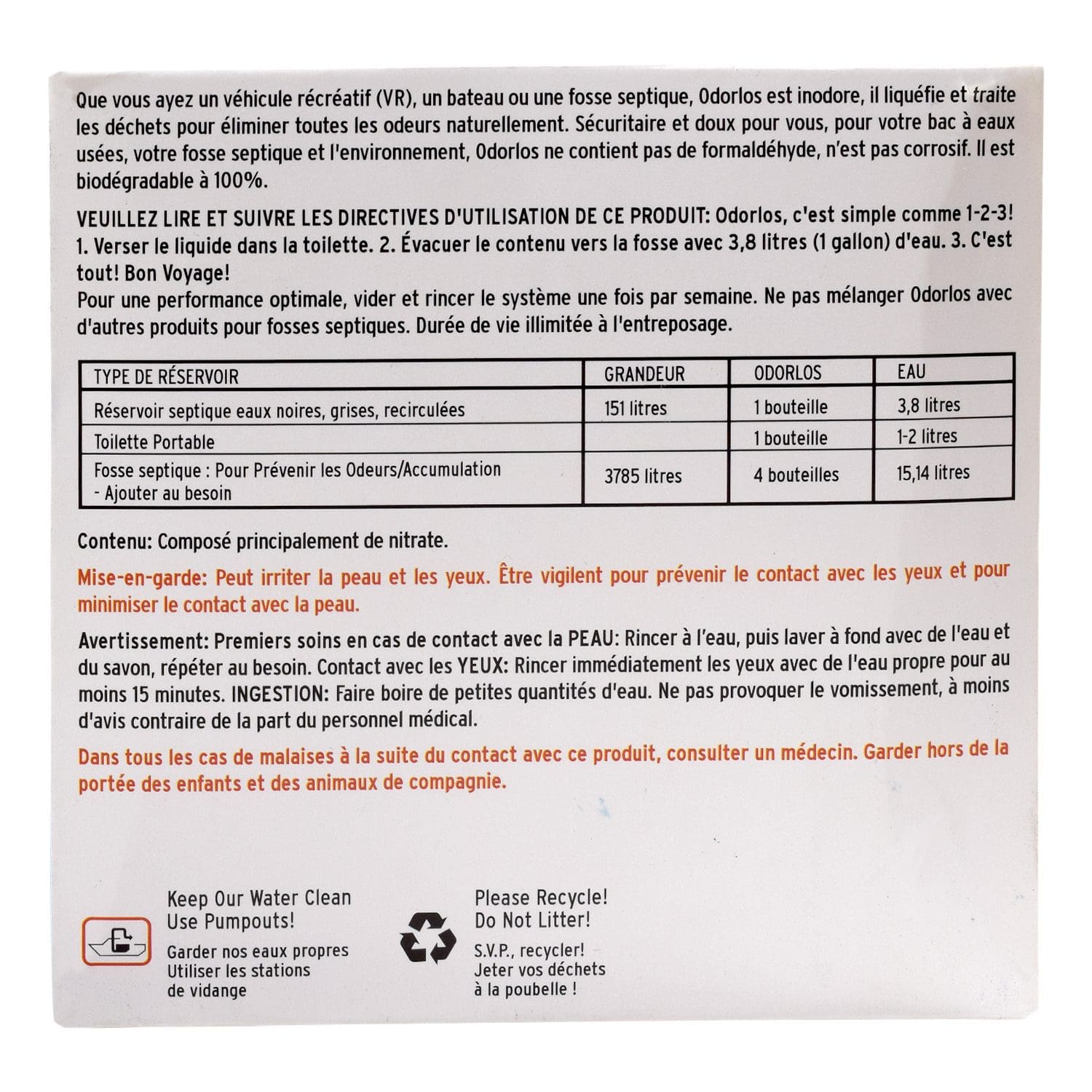 - Safe and effective in all RV and marine holding tank and septic tank systems