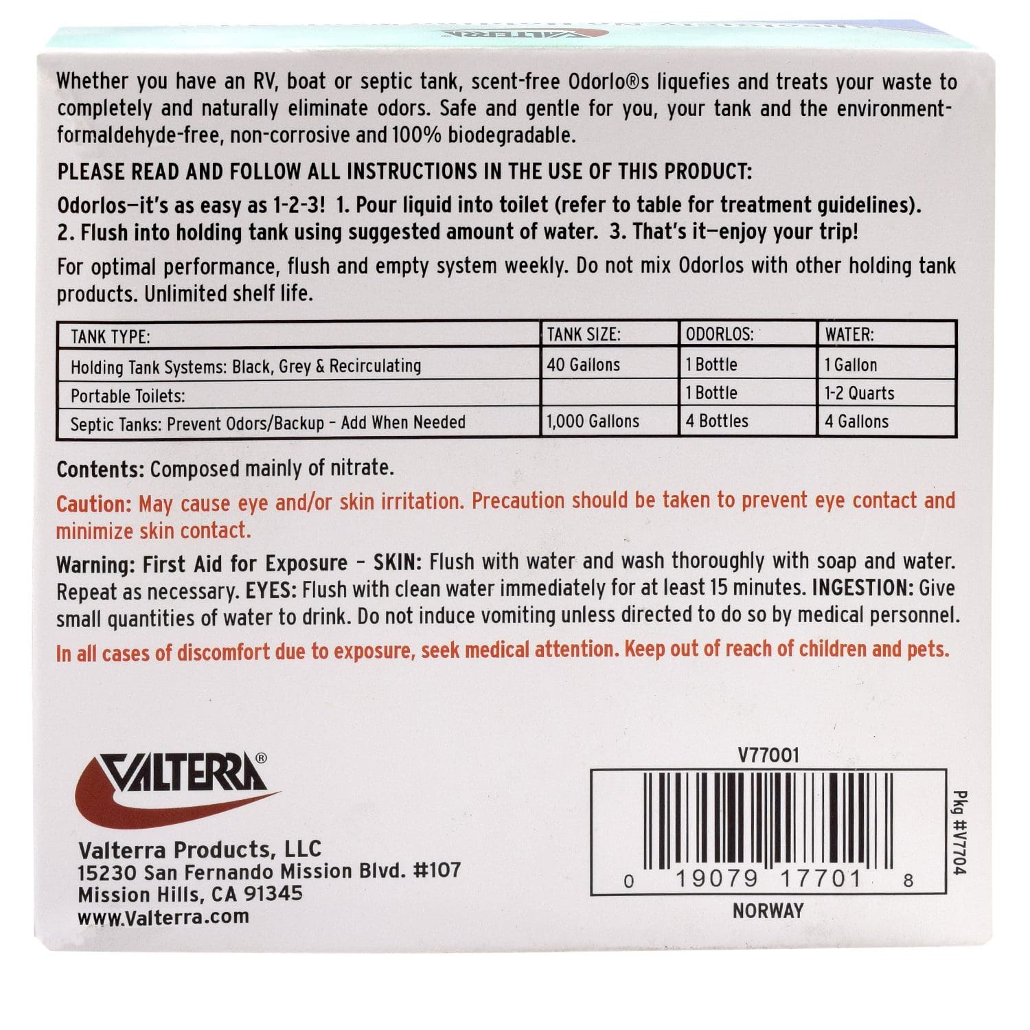 This Valterra Odorlos Waste Holding Tank Treatment provides the naturally occurring bacteria with a continuous supply of the best alternative energy source to pure oxygen (nitrates) when added to holding tanks. This eliminates the need for bacteria to target sulfate for energy, and the result is no holding tank odours.