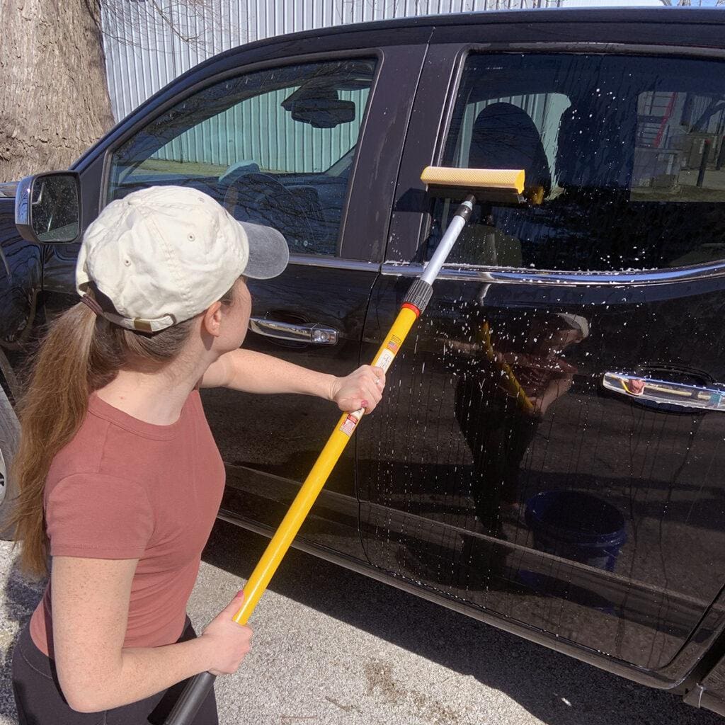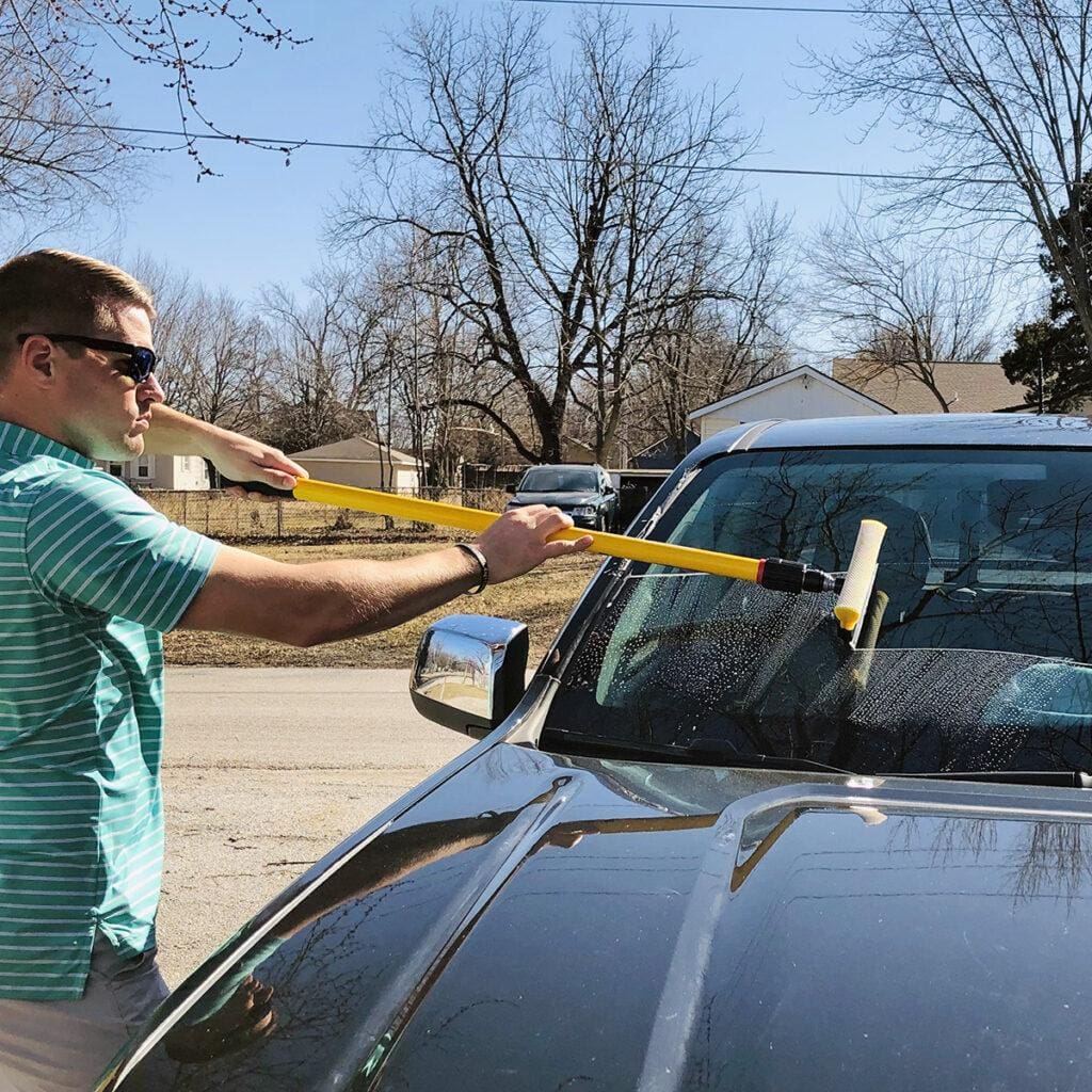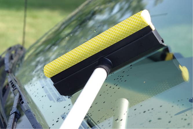 This Mr. Longarm Squeegee/Sponge Scrubber help keep your windows sparkling clean. The scrubber sponge removes the stuff your wipers can’t.